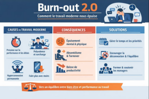 La transformation numérique a profondément modifié notre manière de travailler. Les outils digitaux, les emails, les messageries instantanées et les réunions en ligne facilitent la communication et permettent de gagner en efficacité. Cependant, cette connexion permanente a également ses effets secondaires. L’hyperconnexion, la multiplication des notifications et la surcharge d’informations peuvent progressivement augmenter la charge cognitive des salariés. Dans ce contexte, la frontière entre vie professionnelle et vie personnelle devient de plus en plus floue. Cette évolution du monde du travail contribue à l’émergence d’un phénomène souvent qualifié de «burn-out 2.0», où la culture numérique et la pression de disponibilité permanente deviennent des facteurs modernes aggravant l’épuisement professionnel.